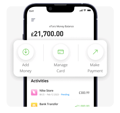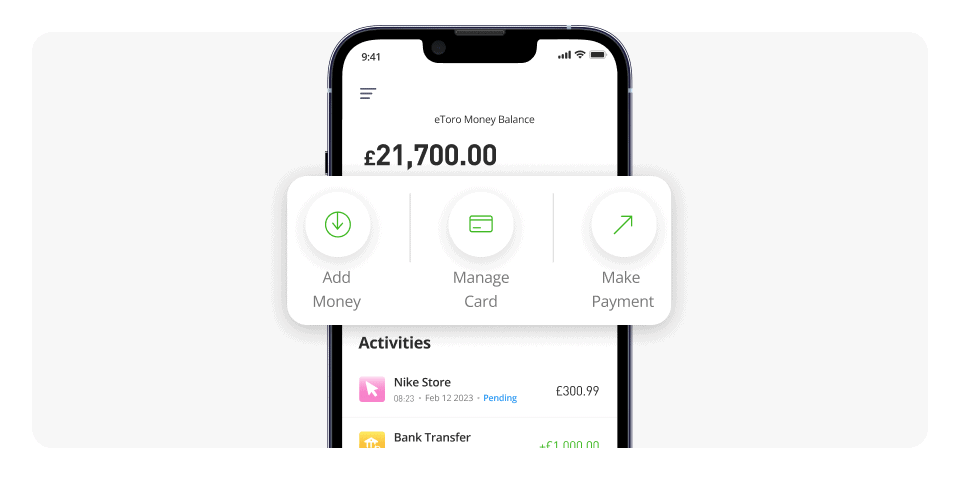 您可以通过 eToro Money 应用程序管理您的英镑或欧元帐户,包括将资金转帐到 eToro 美元投资帐户,或者出金至外部帐户。