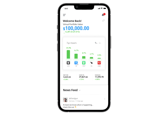 通过免费的100,000美元模拟账户,探索eToro平台的简单易用性。建仓和平仓,创建 创建虚拟投资组合,加密货币和其他资产交易,提升您的交易和投资技能。