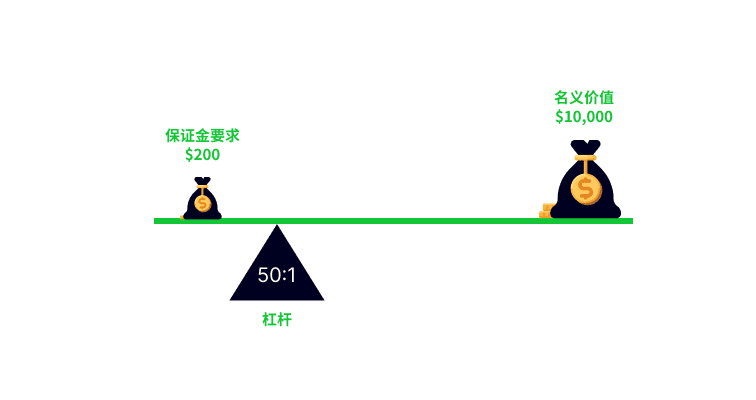 保证金是您开仓所需的金额,而杠杆是该保证金的倍数。