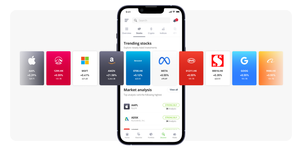 从科技到医疗,从纽约到香港,eToro 使交易者可以实时投资全球顶级交易所的股票。
